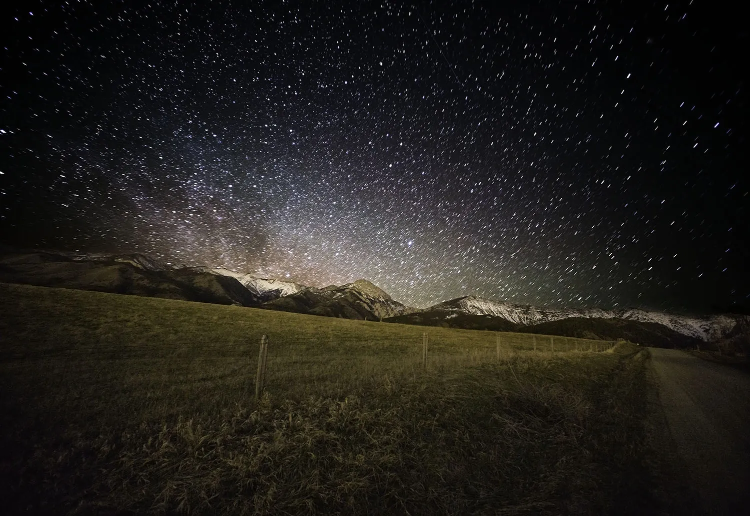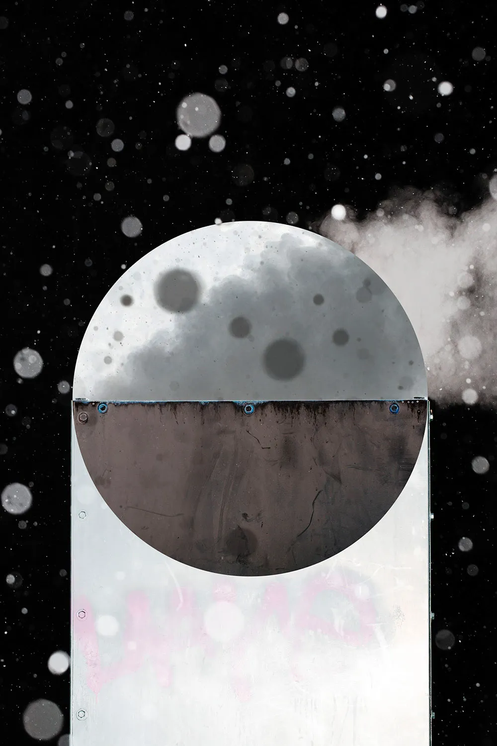 A blue strip against a black and white landscape