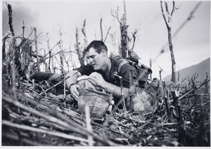 Larry Burrows Four marines recover the body of a comrade under fire. On the right: French photographer Catherine Leroy , who had flown in on a supply helicopter